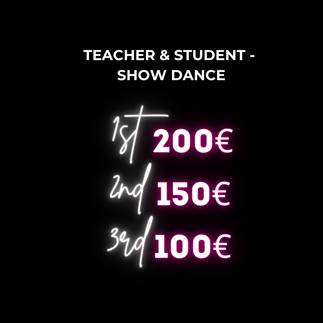 For this year, for the first time, the top 3 Teacher & Student Show Dances and the best Ladies Team will also win a prize money.